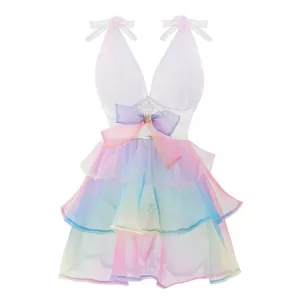 Explore our Cute Sexy Lingerie Fantasy Rainbow Girl Cosplay Uniform. Featuring a Lolita princess dress, gauze perspective nightgown, and bubble skirt.