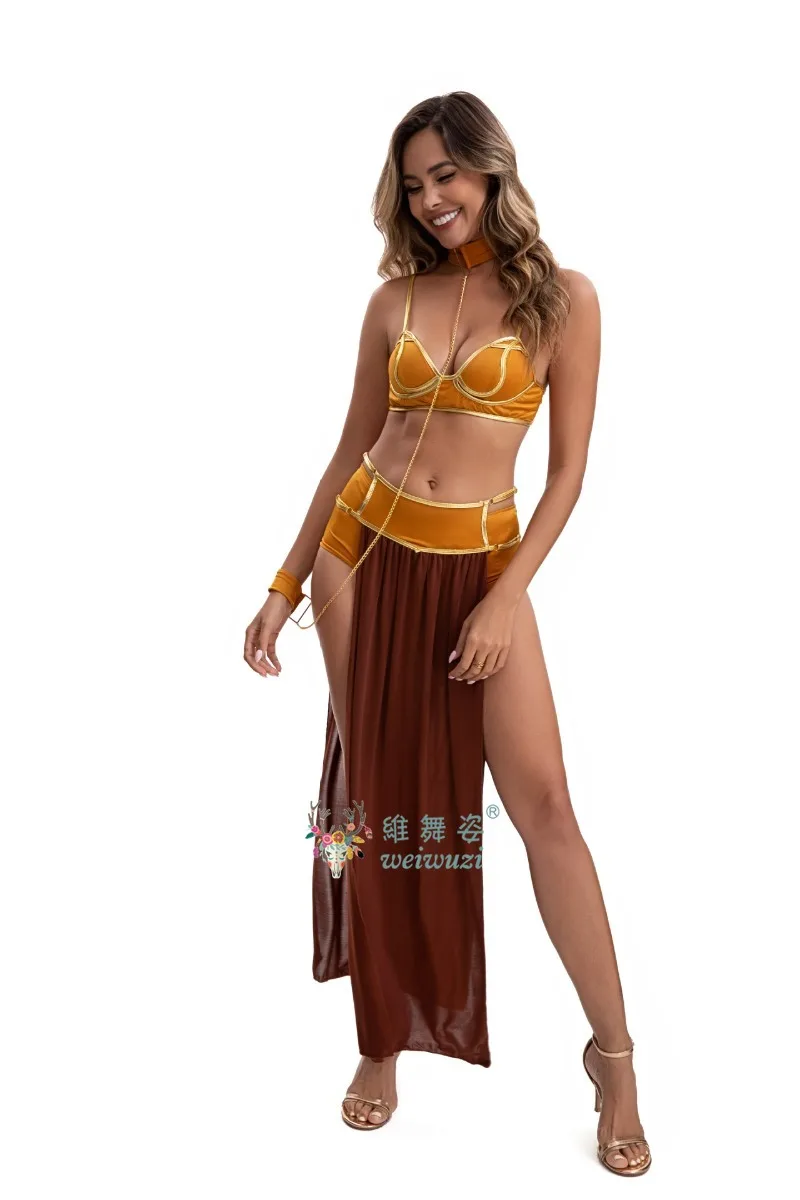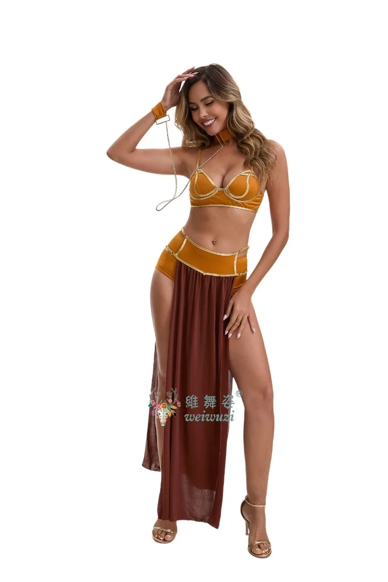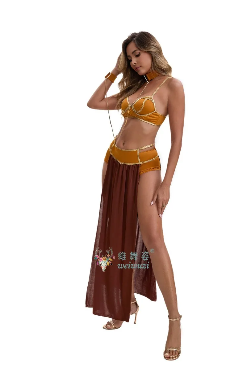Ideal for Halloween, themed parties, cosplay events, or carnivals, this costume embodies both elegance and bold sensuality. Whether you’re channeling the allure of Cleopatra or the mystique of a desert princess, this costume guarantees you’ll rule the night.