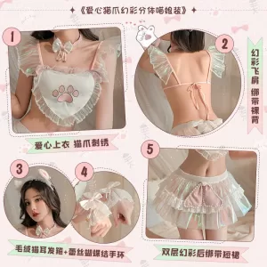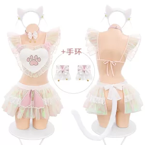 Packaging content: hair band+neck ring+top+bracelet * 2+short skirt+cat tail+T-pants