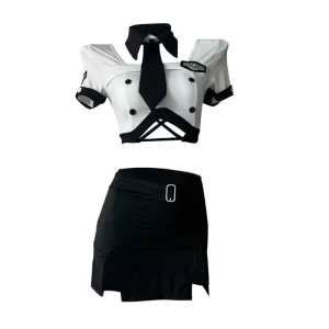 Packaging content: hat+top+bow tie+tie+short skirt+T pants