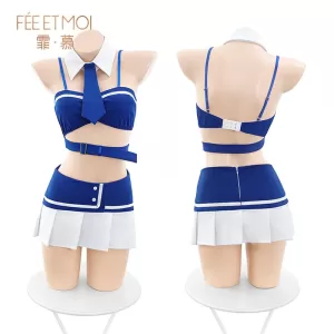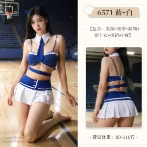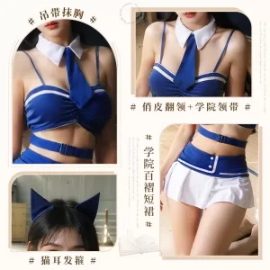 Packaging content: Hair band+tie+lapel+short top+short skirt+T-pants