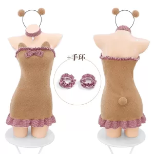 Japanese Kawaii Bear Maid Cosplay Costumes Brown Bow Embellishment Plaid Lace Cute Lolita Sexy Lingerie Set Baby Doll TemptationJapanese Kawaii Bear Maid Cosplay Costumes Brown Bow Embellishment Plaid Lace Cute Lolita Sexy Lingerie Set Baby Doll Temptation