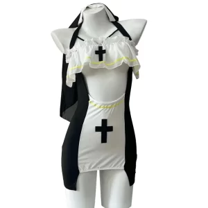 Japanese Lolita Anime Nun Cosplay Sexy Costume for Women Kawaii Lace Halter Nightclub Cos Uniform Perspective Hip Wrap Skirt SetJapanese Lolita Anime Nun Cosplay Sexy Costume for Women Kawaii Lace Halter Nightclub Cos Uniform Perspective Hip Wrap Skirt Set