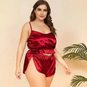 Plus Size Women Pajamas Set Camisole And Shorts Sleepwear Solid Color Silk Satin Spaghetti Homewear Loungewear Female Nightwear