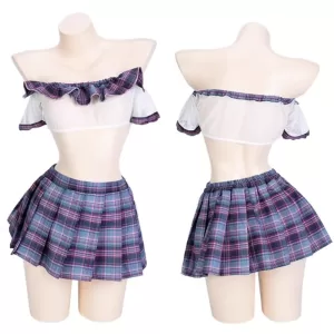 Porno Live Show Sexy Lingerie Erotic One-Shoulder Bustier See-Through Student Schoolgirl Pleated Skirt Uniform Temptation in Bed