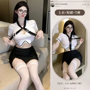 Senior Club AV Actress Sexy Female Secretary Costume Cosplay Deep V Neck Top Mini Skirt Lingerie Set Hot Office Role Play Outfit
