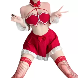 Packaging content: Bowtie+bra+short skirt+T-shirt+bracelet * 2