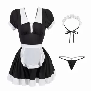 Packaging content: Headband+maid skirt+T-pants+apron