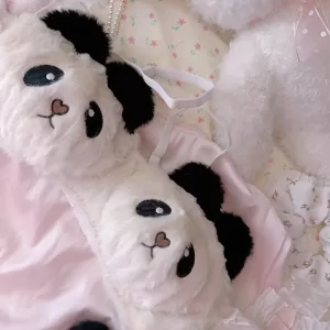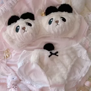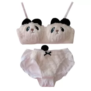Sexy Young Girl Women’s Cute Panda Underwear Set Sweet Lolita Bow Plush Trim Bra & Panties Sets Cotton Lingerie Set Push Up Bra