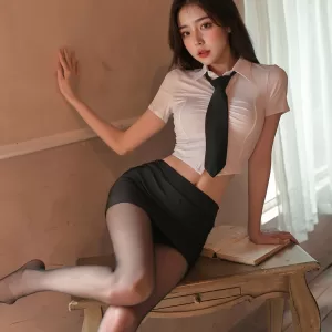 Packaging content: Top+Tie+Hip Wrap Skirt+T-pants
