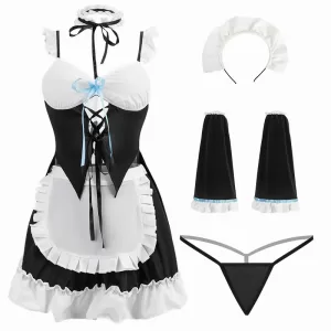 Packaging content: hair band+neck ring+top+short skirt+sleeves * 2+bow tie+T pants