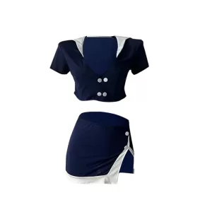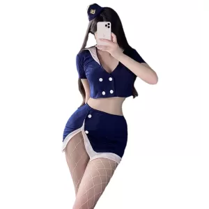 Transform into a stylish stewardess with this sexy flight attendant uniform. Inspired by office secretary and anime aesthetics, this costume includes a top, mini skirt, hat, and T-pants. Made from comfortable acrylic, it fits busts from 78-100cm and waists from 60-100cm, accommodating sizes S-XL. Ideal for cosplay, themed parties, or adding a playful touch to your wardrobe, this uniform offers both elegance and charm. Perfect for making a memorable impression at your next event.