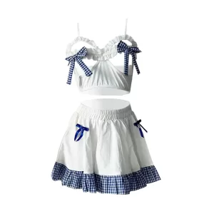 Step into playful elegance with this sexy maid cosplay lingerie set, featuring a bold bow open chest design and a charming Lolita-inspired style. Made from soft net cloth, the set includes a top, short skirt, two bands, and T-pants for a complete erotic look. Whether you’re dressing up for a cosplay event, a themed party, or simply spicing up your boudoir collection, this maid outfit is sure to impress. With its flexible one-size design, it fits bust sizes 72-120cm and waist sizes 58-90cm, making it a flattering choice for women from S to XL.